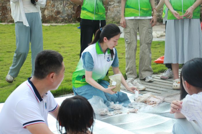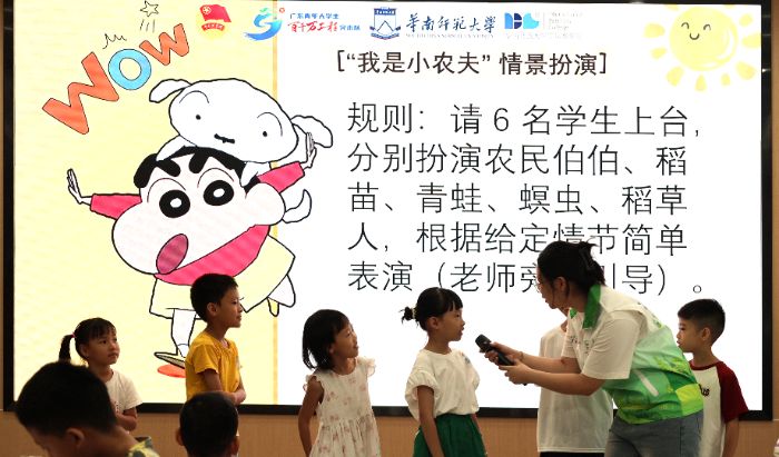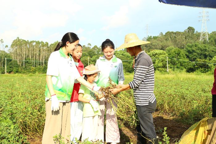 农耕文化系列课程的设计和开发,对设计的研学课程进行落地,在惠州博罗党群服务中心和承粮陂村开展理论实践课堂。理论课堂上,队员们开展《米饭成长记》绘本阅读课,讲述了水稻从育种、插秧到抽穗、收割的生命周期,使孩子们理解“粒粒皆辛苦”的含义;设计“我是小农夫”情景表演,学生分别扮演稻苗、青蛙、螟虫和稻草人等角色,了解农田生态系统;进行“稻谷绘丰年”活动,提高学生美育和创造力。
