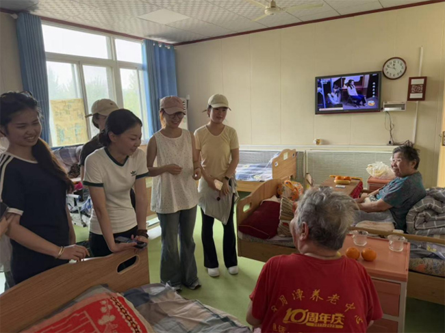 为了响应并实施关爱老人的号召,“智慧领航”实践团成员于2025年7月11日至7月17日来到山东省济南市章丘区工业二路日月潭养老中心开展了为期7天的社会实践活动。实践团一行走进老人房间与老人们亲切交流,送去水果和生活物品,并帮助整理室内环境,营造出温暖和谐的氛围。