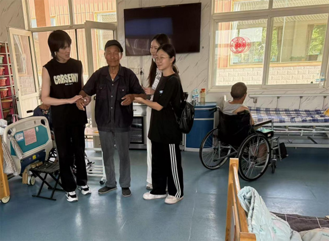 活动期间,实践团成员在工作人员的指导下,积极参与到养老院的日常服务中。室内,几位成员搀扶老人进行康复行走训练,细心守护每一个动作,帮助老人恢复身体机能。院内长廊和休息区,青年志愿者与老人面对面交谈,耐心倾听他们的生活经历与心声,用真诚的交流拉近了彼此的距离。