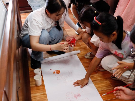 图为实践队成员和小朋友们一起完成“情绪印画”。肖云杰 供图