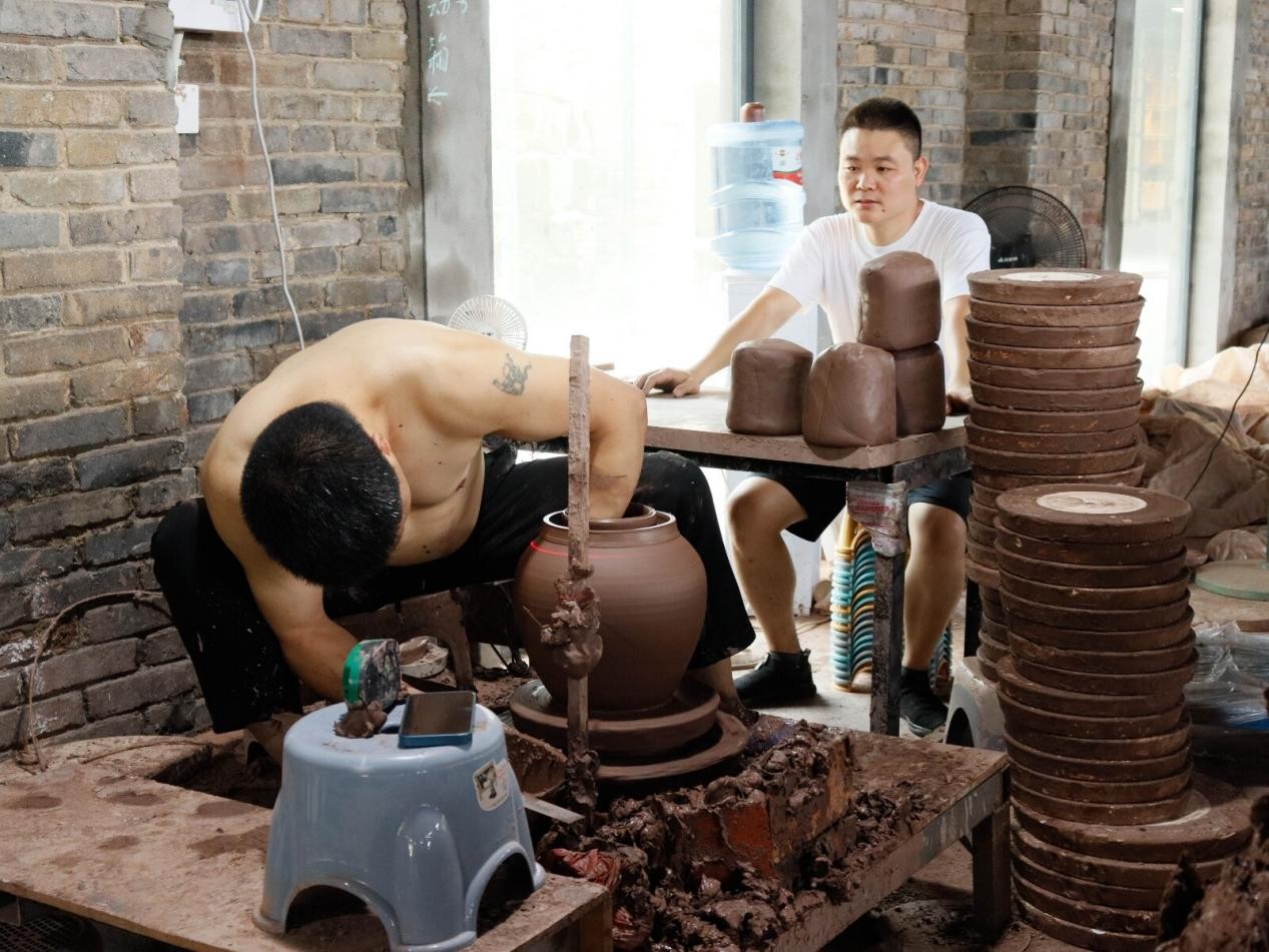 图为实践队实地观察制陶师傅制陶流程。肖云杰 供图