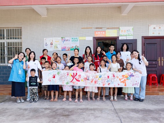 图为实践队成员与乐德镇天宫庙村童伴之家师生及工作人员的合影。周昀屿 供图