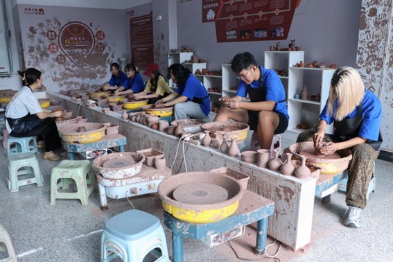 图为实践队成员在荣县土陶创意园进行制陶体验。肖云杰供图