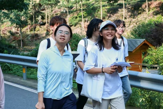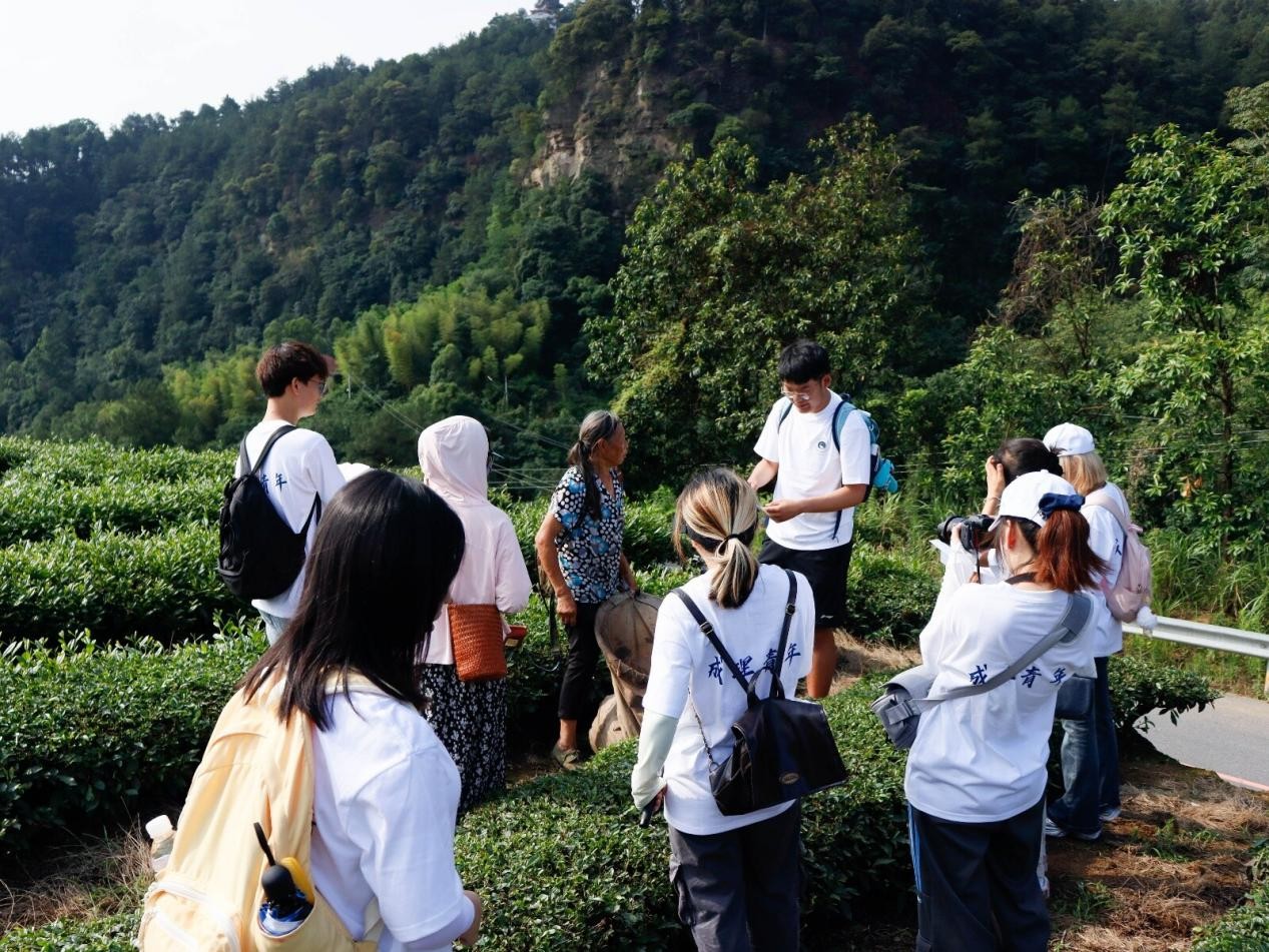 图为实践队与周思敏老师一同前往茶园深处调研记录。赵偲琪 供图