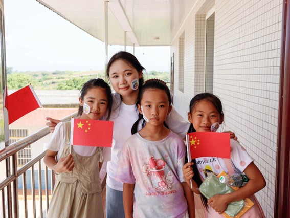 图为实践队成员和小朋友们的自制红旗展示。肖云杰 供图