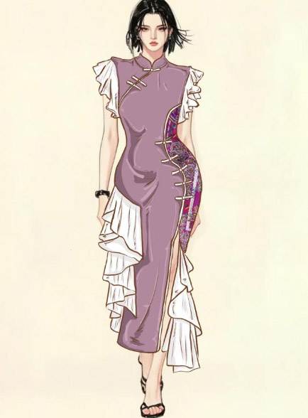 图为团队成员制作的瑶族新中式服装。程朗伍燕铃绘画