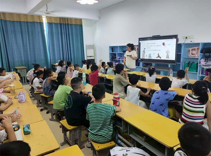 图为实践团成员毛颖悦为孩子们讲述趣味知识