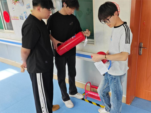 为增强安全意识,实践团成员还专门学习并检查了养老院的消防设备。几名青年认真核对灭火器使用说明,逐项确认有效期限和操作方式,确保院内的消防安全设备处于完好状态。这一环节不仅有助于提高养老院的安全管理水平,也体现了实践团对细节的关注。