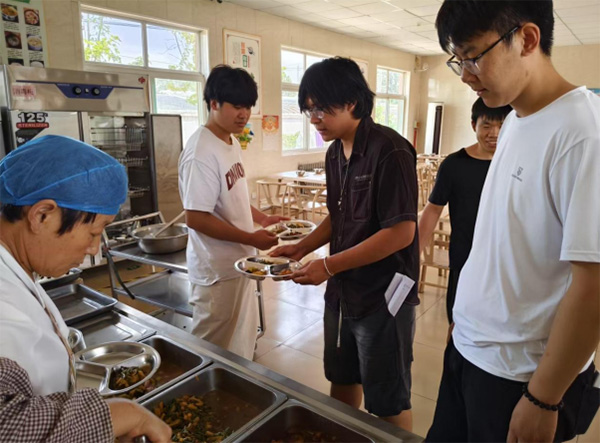在养老院的餐厅里,实践团成员积极协助分餐服务。他们排队领取饭菜,协助厨师将热气腾腾的饭菜端到老人餐桌前,确保每位老人都能按时享用可口的午餐。这一环节不仅缓解了食堂的工作压力,也增添了餐厅内的温暖氛围。