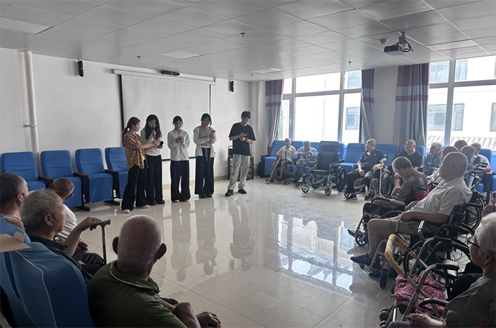 活动期间,实践团成员们为老人们进行歌曲的展示,以优美的歌声和动人的旋律激发老人们对节目的热情,以爱与爱之间的传递展现人与人之间的关心与爱护。