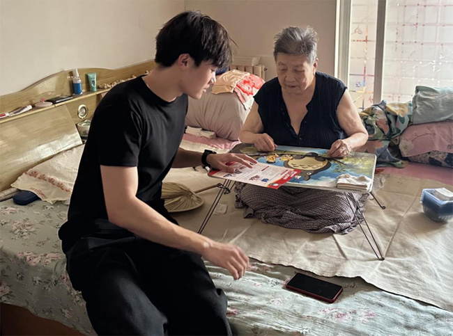 在走访环节,实践团成员走进居民家中,与老人面对面交流,详细询问日常生活中的困难与需求,并借助宣传资料讲解相关政策。老人们在床边与实践成员交流时,认真翻阅资料,不时提出问题,场面温馨而专注。