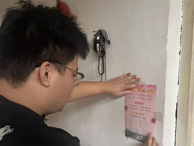 图为“葵花向阳,暖迹盎然”实践团成员检查服务卡情况