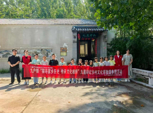 随后,实践团带领孩子们走进九户印记乡村文化博物馆,开展了以“探寻家乡历史传承文化根脉”为主题的参观活动。在讲解员的带领下,孩子们参观了与九户镇发展相关的实物展陈与历史照片,了解了当地的发展历程与民俗文化,切身感受到乡土文化的厚重底蕴。