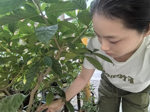 图为实践成员为园区搬运绿色植物