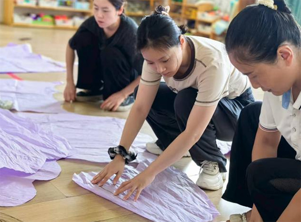 第五至八天,实践团队开展了环保宣传环创制作活动。教师与幼儿利用废旧材料共同制作了彩色风铃、动物模型等装饰品,共计完成50余件环保创意作品。这些作品不仅用于园所环境布置,更成为幼儿环保教育的生动教材。