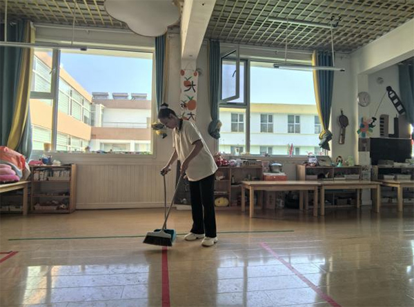 图为实践成员打扫卫生