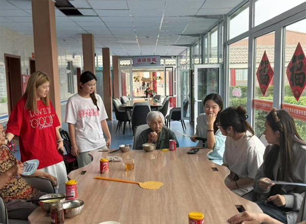 在餐饮时段,实践团成员与老人们同桌而坐,共同享用简餐。年轻人与老人们一边进餐,一边交流,彼此举手投足间洋溢着融洽与亲切。志愿者们贴心地照顾行动不便的老人,让他们感受到不一样的陪伴与关怀。