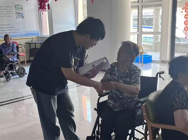 除环境整治外,实践团还开展了情感交流环节。成员邀请老人参与手工小制作和简单健康体操,并在活动结束时送上牛奶、水果及营养糕点,帮助其补充营养。同时,志愿者对老人日常需求进行细致记录,确保后续护理更加贴心。