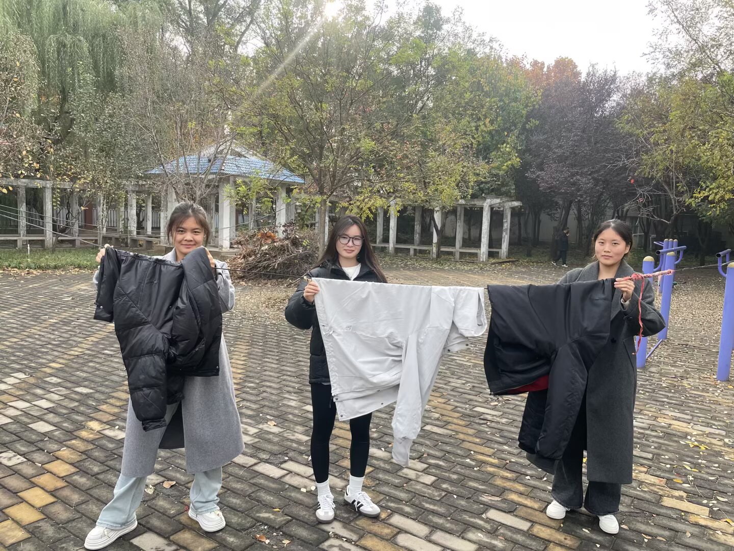 清洁过程中,实践团成员发现部分老人房间桌面较为杂乱、积尘较多,便用抹布仔细擦拭,还将老人未整理的衣物拿到院内晾晒,晾晒后叠整齐放入衣柜。在活动室,成员们用温水浸湿抹布,反复擦拭木质桌椅上的污渍,擦拭老人户外活动室的玻璃。遇到较重的实木椅子,两名成员合力挪动后,清扫椅子下面积尘,确保清洁无死角。