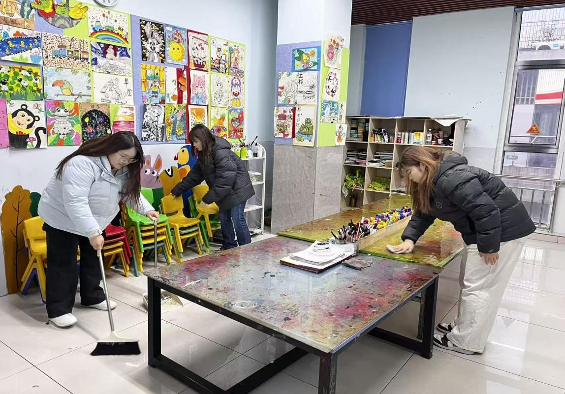 每日清洁工作结束后 实践团成员会与天一教育机构工作人员一同检查区域卫生 针对遗漏之处及时补做 天一教育机构负责人表示 孩子们的学习环境变干净了 大家的学习积极性也提高了 实践团成员们用实际行动诠释了志愿服务的内涵 让整洁的环境成为机构教育的坚实后盾 天一教育机构教师们看着焕然一新的教育环境 纷纷向成员们点头致谢 负责人李老师也对实践团的细致工作给予肯定