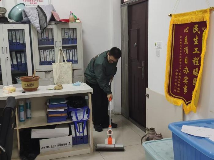 实践过程中,实践团主动承担起办公环境维护工作,对办公桌面、文件柜进行归置整理,清理公共区域的杂物与垃圾,为社区工作人员和前来办事的居民营造了整洁有序的办公环境。