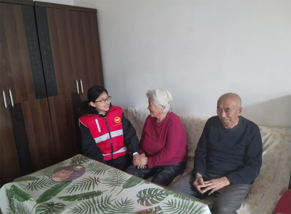 紧接着在客厅陪同两位老人交谈,耐心倾听生活近况与身体状况变化,并将需要社区协助的事项记录在册,现场与社区工作人员对接反馈。