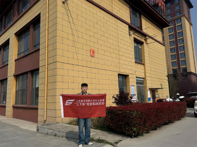 志愿者代表手持“三下乡”社会实践活动旗帜,在颐养院前合影留念,定格青春志愿瞬间。