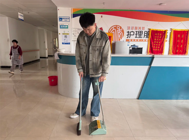 拿起扫帚、簸箕,认真清扫公共区域地面,清理杂物与垃圾;还有的协助整理护理站物品,规范摆放设施,让院区面貌焕然一新。志愿者们用勤劳的双手,为老人们营造了整洁、温馨的居住环境,用劳动践行志愿服务精神。