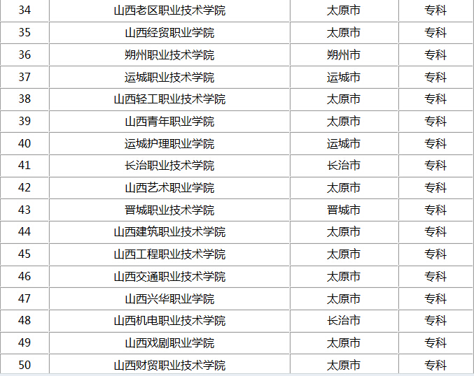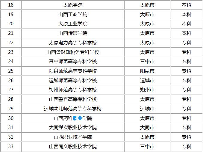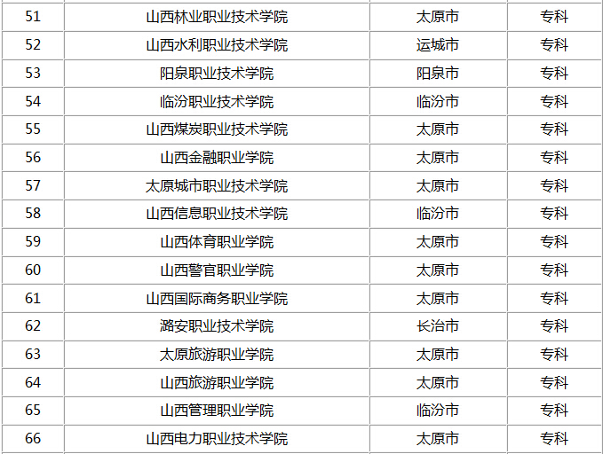 山西省一本大学、二本大学、三本大学、专科共70所大学,以下是山西省所有大学名单。