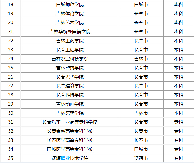 导读:吉林的悻悻学子每当临近高考之际想必都会十分关注下自己家乡的大学。作为高三的学生,都希望可以选择一个不错的大学,如果想要去吉林就读的话,那么可以了解一下吉林有哪些大学,这样就可以方便自己报考了。下面小编就为大家统计下吉林一共有哪些大学。吉林一本大学、二本大学、三本大学、专科共有51所大学,以下是吉林省所有大学名单。