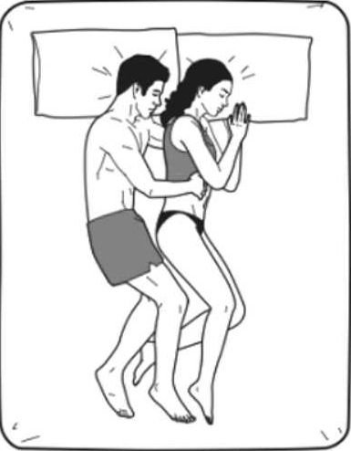 一方抱另一方入怀,紧紧依偎:这是身体上的无限贴近,显示出情感的亲密无间。“睡在后方的一人,在婚姻中往往扮演着保护者的角色;睡在前面的那个则是被照顾者,感情细腻、非常恋家。这种亲密的睡姿还有一个好处,就是能增加性爱次数。”《睡姿的秘密语言》一书作者、美国行为学家意梵尼托马斯说。