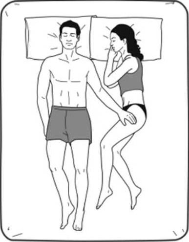 姿势不定,手脚或搭在对方身上,或和对方的手脚接触:你们个性独立,但在多数问题上能达成一致。主动伸出手脚的一方依赖性更强,需要确认枕边人一直都在。
