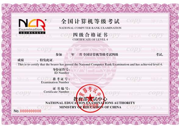 四级证书:四级证书表明持有人掌握从事信息技术工作的专业技能,并有系统的计算机理论知识和综合应用能力。