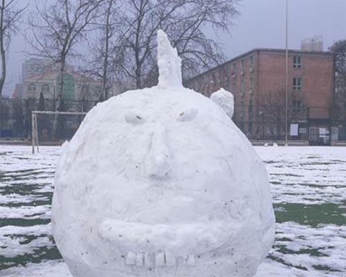 大学生堆出创意雪人