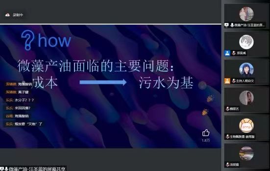 电子科大十年金奖团队iGEM两位负责同学:姜雨璇和汪圣蓝分别为我们解密了“生物酶脱墨”及“莱茵衣藻排污产油”两项自主研发环保黑科技。云端科普依旧引发了观众们的热烈讨论与共鸣,活动直播期间共计点赞量2.6万。