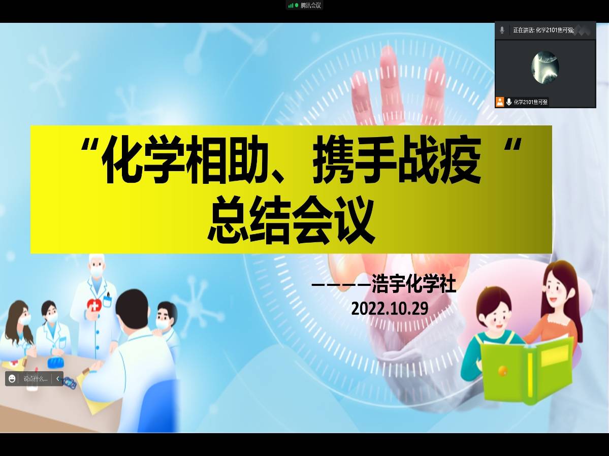 疫情反反复复,给我们带来了心理上的困扰以及生活中的不便,为了考察同学们能否认识到化学对于生活以及自身安全的作用、考验同学们生活化学的相关知识与防疫意识,化学化工学院浩宇化学社于2022年10月29日下午14:30分许,结合QQ群及腾讯会议的方式在线上举办了“化学相助,携手战疫”活动。