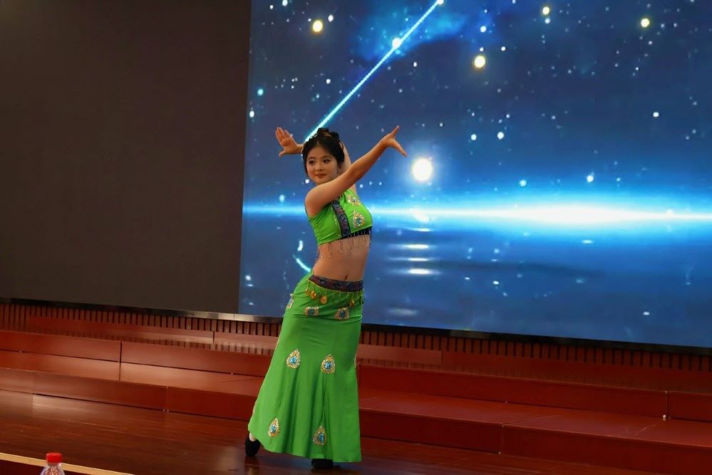 报告会精彩之际,潇湘学院艺术团成员黄婧茹为大家带来中场舞蹈表演《灵》。音乐徐徐飘来,舞者着一身绿衣身姿轻快,踏着细碎的舞步缓缓入场。舞台上,她翩翩起舞,矫若游龙,举手投足间宛若丛林间一只自由的野孔雀,与森林共舞,同万物共生,让观众领略了别样的民族风情。音乐和动作的巧妙配合,为在场观众带来了一场视听盛宴,引来阵阵热烈的掌声。