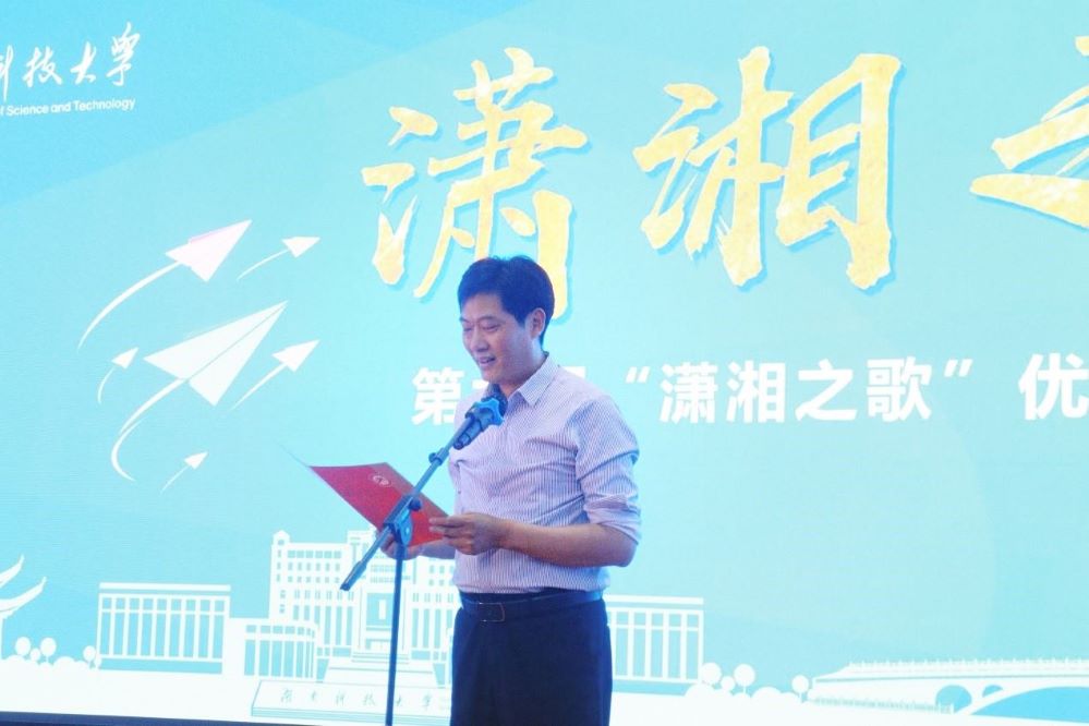 结合学习贯彻习近平新时代中国特色社会主义思想主题教育,为深入学习贯彻党的二十大精神,充分发挥榜样力量的示范引领作用,号召广大青年学子奋发跨越、踔厉担当,5月26日,湖南科技大学潇湘学院第九届“潇湘之歌”优秀毕业生报告会顺利举行,此次活动采用线上线下结合的形式,以立德楼A附楼五楼报告厅为主会场,各分会场及线上同步直播进行。湖南科技大学党委委员、副校长赵前程亲临现场指导并为报告人颁奖,相关职能部门领导、部分学院党委书记和副书记及潇湘学院全体教职员工出席活动现场。近三千名学生共同聆听九位优秀报告人坚持与奋斗的潇湘故事。