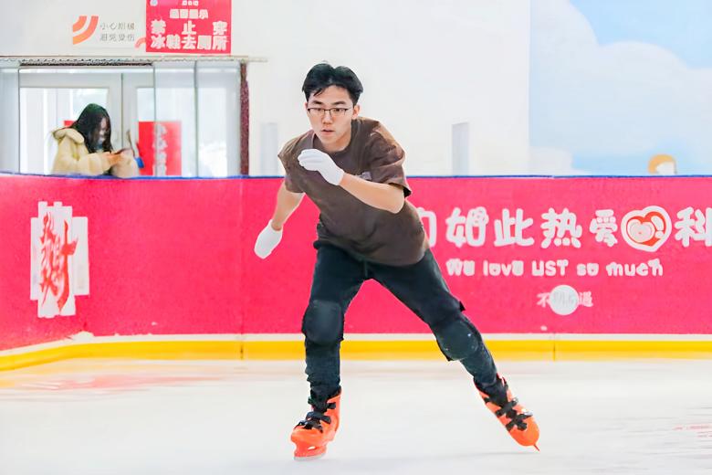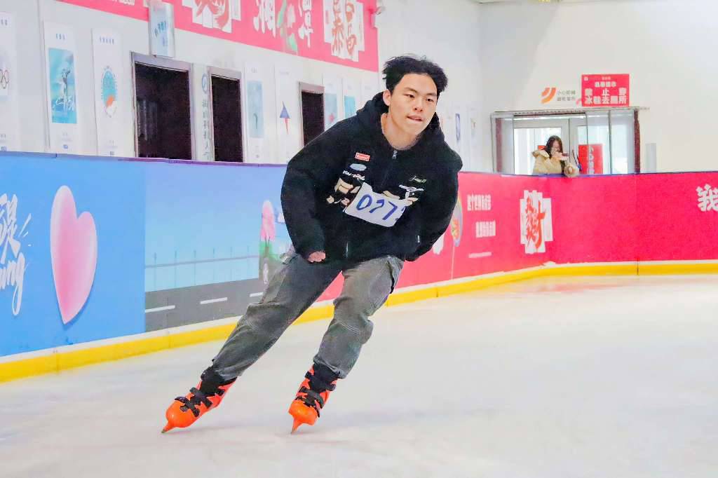 8:00,学生甲组男子150米速度滑冰第一赛次正式开始。运动员们压低重心,身子倾斜,全力以赴地开始绕场地三圈的滑行。男生的爆发力与冰面的丝滑相结合,赢得观众阵阵喝彩。商学院22级金融工程二班谢源感叹道:“滑冰不仅是一种愉快的体验,还强化了我的身体素质。未来我会继续保持对滑冰的热爱,在闲暇之余坚持滑冰。”