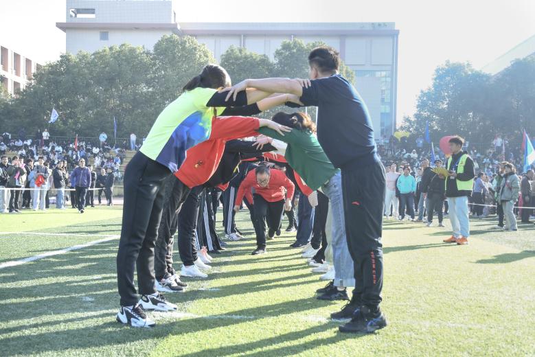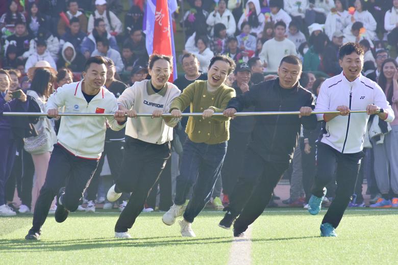 为进一步推动校园文化建设,增强我校教职工合作意识与团体凝聚力,11月17、20日,我校第十三届“团结杯”教职工体育趣味运动会(以下简称“教职工运动会”)于第一田径场顺利举行。本次教职工运动会共有拔河比赛、“同心追梦”(5人“8”字绕杆接力)、“同心协力”(“十人十一足”跑)、钻“山洞”接力及100米*30人往返接力赛五个项目,共计25支教职工队伍参赛。