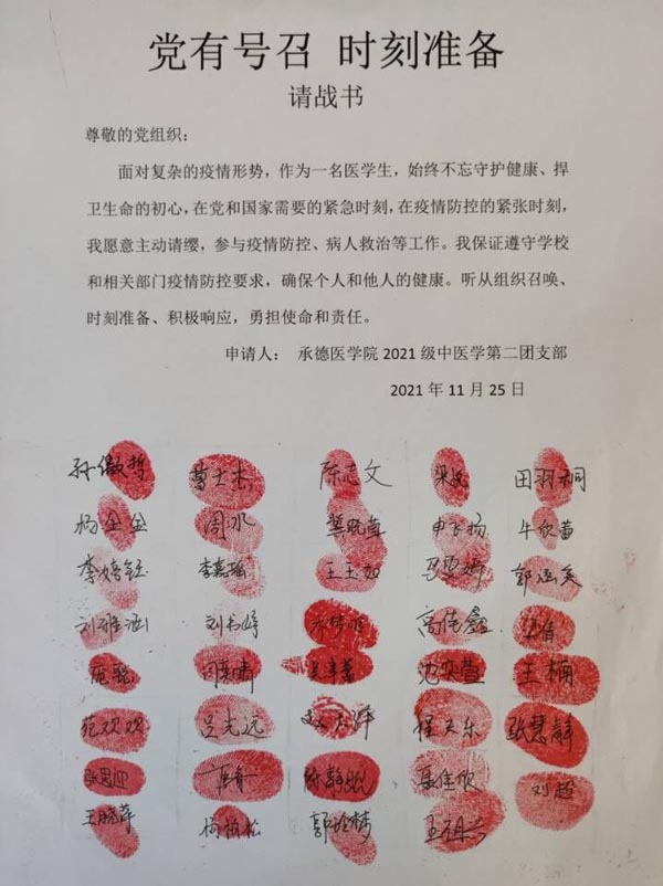 此前,2021年8月23日,习总书记来到围场县塞罕坝林场,察看林场自然风貌、看望护林员、了解林场,强调塞罕坝精神是中国共产党精神谱系的组成部分,是全党全国人民都要发扬的精神。为了积极响应习总书记的号召,将塞罕坝不忘初心,艰苦奋斗,绿色发展的精神内涵践行于当前不断严峻的疫情防控态势,凝聚力量,统一思想,2021级中医学第二团支部开展“弘扬塞罕坝精神坚定防疫抗疫信心”主题系列团日活动。