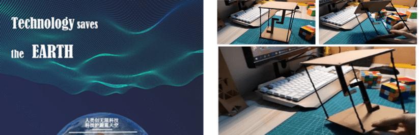 参赛同学积极地开拓创新,从不同视角出发,来表达自己对环保理念的理解。黄锐同学设计的宣传语“高新科技点亮绿色生活,智能环保照耀美好未来!”,充分表达了他对科技环保的理解,科技能促进环保,带来美好生活;唐颖同学通过设计海报来传递自己的环保创意理念,科技和环保是互助的,地球孕育了科技,地球也在科技的庇护下生机勃勃;王晓彤同学则利用废旧纸壳制作出了一种“张拉整体”的结构……参赛作品寓意深刻,别具一格,表达了大家对国家“双减”事业的支持,对科技与环保发展前景的无限期待!希望用手中的作品来呼吁更多人加入低碳环保的队伍,践行环保理念,为恢复生态之美助力。