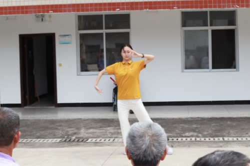 活动期间,在一楼广场进行公益演出,表演节目歌曲《明天会更好》《不忘初心》、古典舞《青山远黛》《梦中的额吉》《相许》、街舞《舞动青春》、《热烈》等节目,彰显青年的青春活力……团队成员们自然生动、声行并茂的表演赢得了老人们阵阵喝彩和热烈掌声,一名老人对调研团说道:“你们的节目蛮有味,你们常来啊!常来!”简短的话语,让团队成员们更加强烈感受到关爱老人的重要性,更加关注这群庞大而特殊的群体,从中学会关爱,学会感恩。