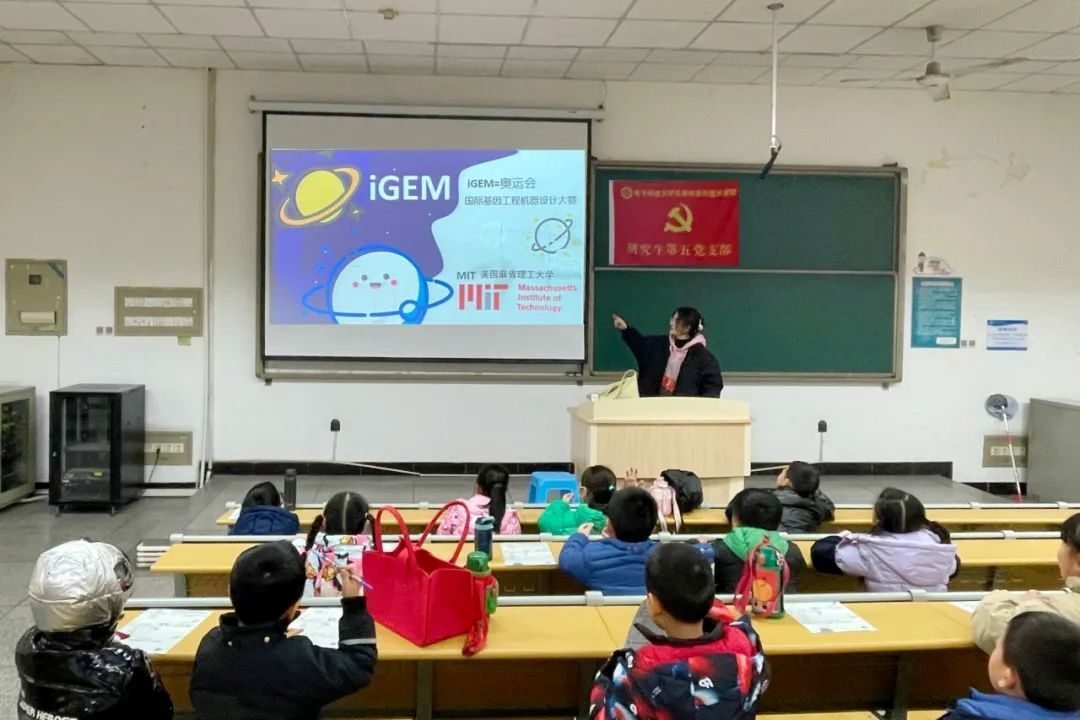 将脑与生态共生的概念引入青少年群体中,培养他们对可持续发展和环境保护的意识,让年轻一代了解并体验城市生活中不易察觉到的人和自然的紧密联系。为了将环境保护理念扩展辐射到更年轻的人群,2023年12月23日生命科学与技术学院党支部举办探秘合成生物学的环保科普课堂活动“大话脑与生态”——科普微课堂,活动依托国际基因工程机器设计大赛(iGEM)十年金牌比赛项目,面对参与的小学生开展了一次生动有趣的科普活动。本次活动以趣味生动、寓教于乐的方式让科普知识走出高校,走入大众,推动节能环保理念入脑入心。通过讲述如何将天马行空的想法转变为现实的应用,引发学生兴趣。将晦涩难懂的知识转化为小朋友们熟悉的游戏,寓教于乐。通过漫画故事《一张纸的一生》,介绍了纸张生产线的高污染高耗能,让小朋友们思考办公室废纸再生的意义。以动手回收再利用一张废纸,让同学们体会到废纸再生的不易,意识到环保的重要意义。讲述通过生物酶法实现纸张脱墨的原理,让同学们了解到生物世界中酶与合成生物学的神奇魔力。这堂生动有趣的课程也引起了小朋友们的强烈反响,在他们小小的心中种下了绿色发展、生态环保的种子。