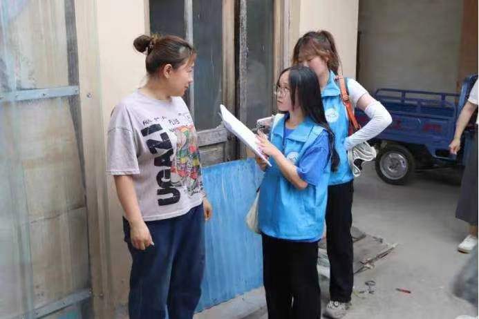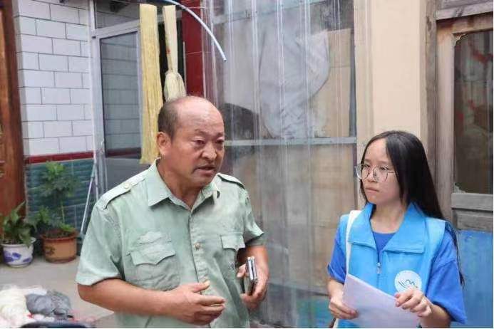 图为实践团负责人采访河东李家村从事电商的年轻人
