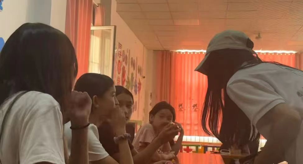 上午11时,实践团与社区完成对接后,活动正式开启。志愿者以手工折玫瑰花为起始,耐心传授折纸技巧。在志愿者的细致指导下,一张张彩纸逐步变成了娇艳的 “玫瑰”。这一环节不仅锻炼了小朋友的动手能力,还借花朵引导他们关注植物形态与生命之美,契合了“推动生态文化深入人心”的科普要求。