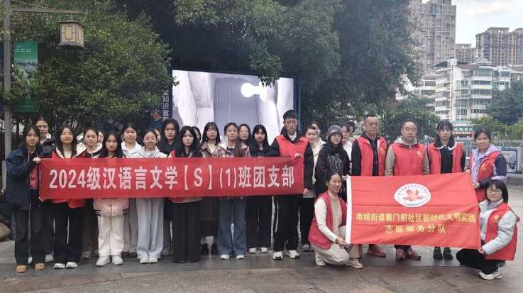 为增强社区居民安全防范意识,营造整洁优美的社区环境,2025年12月26日下午4点半,龙岩学院2024级汉语言文学【S】(1)班团支部联合南门社区党委、居委会,组织大学生志愿者走进南城安全文化公园开展志愿服务活动。活动旨在发挥青年学子的先锋模范作用,用实际行动践行志愿服务精神,为构建平安和谐社区贡献青春力量。