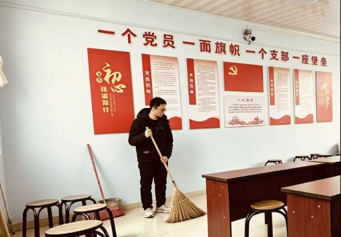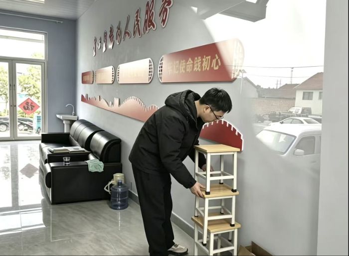成员们对村委会会议室、办公室的所有座椅进行全面排查,将歪斜、摆放混乱的椅子逐一归位、对齐,对松动、摇晃的座椅进行简易加固,确保办公区域座椅整齐划一、稳固可用,为村委会工作人员与村民办事营造规整有序的空间环境。