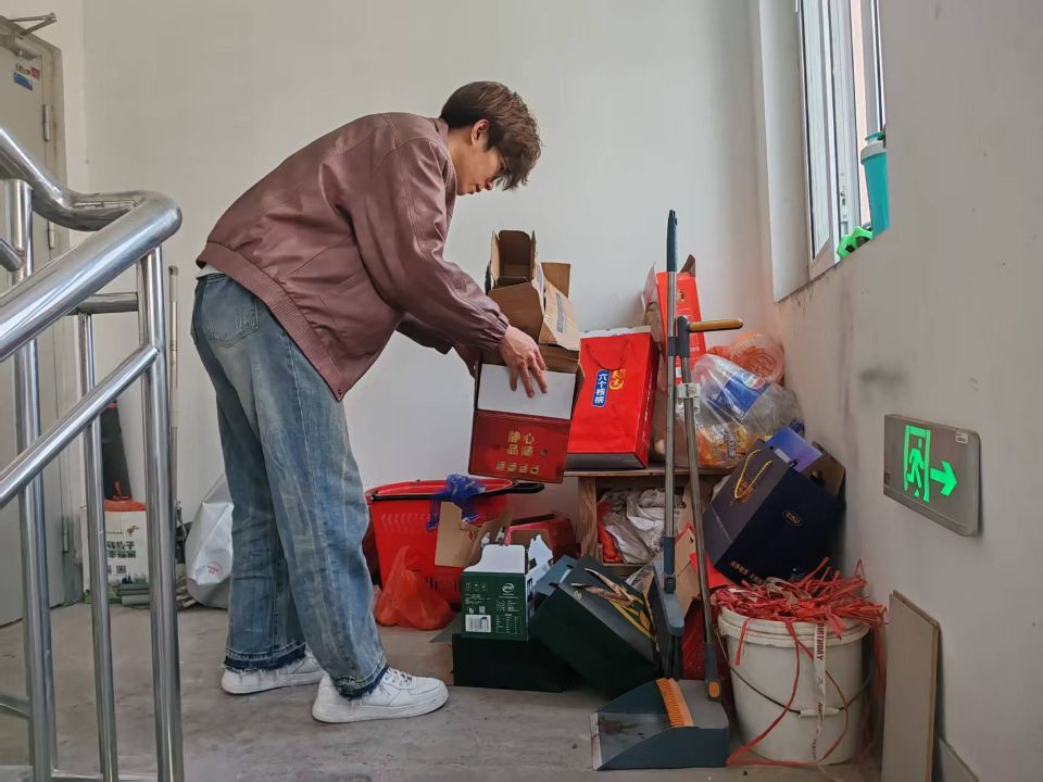 针对社区内小广告乱象,实践团成员携带铲子、喷壶等工具,对居民楼墙面、单元门、电梯间及公共设施上的非法小广告进行全面清理,对顽固粘贴的小广告,先喷洒清水软化,再小心翼翼铲除,避免损伤墙面。同时,成员们对社区消防通道进行全面排查,及时清理通道内堆放的杂物、停放的电动车,耐心引导居民将电动车停至指定区域,确保消防通道畅通无阻。