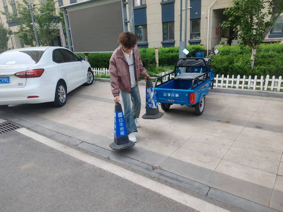 此外,实践团成员还在社区主要路口、消防通道旁规范摆放交通路障,引导居民规范停车,减少交通拥堵与安全隐患。